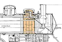 The main boiler drum was made of three rings of steel plates. The front ring was 1.66 m (5 ft 5 in) in diameter and rolled from 18mm plate, the rear ring was 1.8 m (5 ft 11 in) and of 21.5mm plate. The middle ring was conical and tapered between the rear and front rings. As was customary for Austrian locomotives, the steam dome was placed on the rear boiler ring, directly above the third coupled axle. Two 4″ Coale direct spring-loaded safety valves were mounted on the cover of the dome. Tapered boilers were in widespread use by this time and gave weight savings that would appeal to Gölsdorf. The larger diameter at the firebox gave the most steam space where it was needed and a smaller, lighter boiler towards the chimney. Especially with the steam dryer, as this needed even less diameter. There were 291 fire tubes of 53 mm outside diameter but no flues. The forward ring was where the steam dryer was located, so the additional tubeplate was at the rear of this, leaving a steam space 1.45 m long.