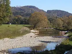 The river is nowadays heavily obstructed due to its recurring floods (Gölsen Dam, On account of its recurrent floods, the Gölsen is nowadays carefully controlled (the Gölsen Dam, river bed steps). However, within its broad riverbed, it can form gravel banks.