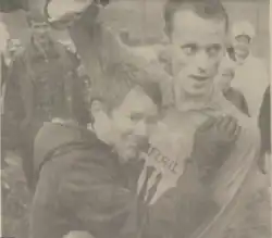 Öhlund is met by his wife Ingrid, after winning the world championship in the relay in 1968.