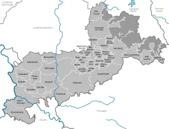 Göttingen (German pronunciation: [ˈɡœtɪŋən] ) is a district (German: Landkreis) in Lower Saxony, Germany. It is bounded by (from the northwest and clockwise) the districts of Northeim and Goslar, and by the states of Thuringia (district of Eichsfeld) and Hesse (districts of Werra-Meißner and Kassel, and the district-free city of Kassel). The capital is the university city of Göttingen.