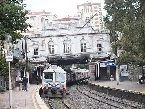 Göztepe station (Turkish: Göztepe İstasyonu) is a historical railway station in Kadıköy, Istanbul. Between 1969 and 2013, it was a station on the Haydarpaşa suburban railway line to Gebze. A modern station of the same name is now a stop on the Marmaray commuter rail service to Gebze.