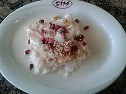 Güllaç (pronounced [ɟylˈlatʃ]) is a Turkish dessert made with milk, rose water, pomegranate and a special kind of pastry.[1] It is consumed especially during Ramadan.[2]