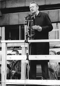 Günter Schabowski ([ˈɡʏntɐ ʃaˈbɔfski]; 4 January 1929 – 1 November 2015) was a German politician who served as an official of the Socialist Unity Party of Germany (Sozialistische Einheitspartei Deutschlands abbreviated SED), the ruling party during most of the existence of East Germany. After climbing up the party ladder, he became the regime's unofficial spokesman. He gained worldwide fame in November 1989 when he improvised a slightly mistaken answer to a press conference question about the future of the Berlin Wall, that seemed to announce the Wall's immediate end and raised popular expectations much more rapidly than the government planned. Massive crowds gathered at the Wall the same night, which forced its opening after 28 years. Soon afterward, the entire inner German border was opened; not much later, East Germany ceased to exist.