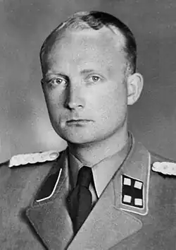 Günther Herrmann (15 September 1908 − 17 February 2004) was a functionary in the SS of Nazi Germany during World War II and a convicted criminal. He commanded the Sonderkommando 4b and the Einsatzkommando 12 of the Einsatzgruppe C in the occupied Soviet Union and the Einsatzgruppe E in Croatia. In 1973, Herrmann was convicted of the murders committed in 1941–42 in the occupied Soviet Union and was sentenced to seven years in prison.
