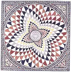 All the rooms are decorated with intricate mosaics of coloured marbles and stones arranged in geometric designs. The corridors and latrine are, on the other hand, paved with ceramic lozenge-shaped tiles of a length of just fewer than ten centimeters.