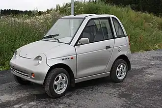 The REVAi, known as G-Wiz in the United Kingdom,[2] is a small micro electric car, made by the Indian manufacturer Reva Electric Car Company between 2001 and 2012. By late 2013 Reva had sold about 4,600 vehicles worldwide, in 26 countries.[3][4] Sales in the United Kingdom, its main market, ended by the end of 2011.[5] Production ended in 2012 and the REVAi was replaced by the Mahindra e2o.[1]