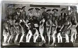 During the nine days allotted for rehearsal cast and crew mustered what costumes, wigs and make-up they could. Guitarist and musical arranger Sgt. Marty Faloon coordinated with choreographer T/Sgt Hal Edwards, who had worked for Arthur Murray and danced in 20th Century Fox Studios musicals, on adaptations of popular contemporary numbers as well as original tunes composed by saxophonist Cpl. Herbert Behrens.[2] The band for G.I. Carmen had its beginnings during stateside training when jazz violinist, Ralph Cerasuolo, once known in New York City as "Leonardo of the Stork Club", coaxed and inspired G.I. volunteers of the 63rd into a swing unit that was in high demand, opening the new USO Club in New Orleans and playing multiple shows weekly around the south during breaks from combat drills. Cerasoulo was killed in action in April 1945; for G.I.Carmen, the band’s leadership fell to Sgt. Faloon. Guitarist S/Sgt Charlie Byrd performed in the chorus as well as the band where his playing was favorably reviewed.