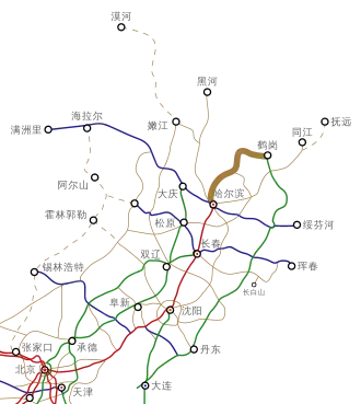 The G1111 Hegang–Harbin Expressway (Chinese: 鹤岗—哈尔滨高速公路), commonly referred to as the Heha Expressway (Chinese: 鹤哈高速公路), is an expressway that connects the cities of Hegang, Heilongjiang, China, and Harbin, Heilongjiang. The expressway is a spur of G11 Hegang–Dalian Expressway.[1]