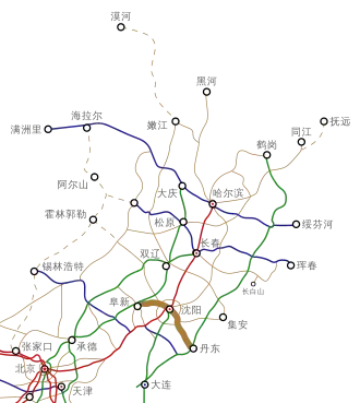 The G1113 Dandong–Fuxin Expressway (Chinese: 丹东—阜新高速公路), commonly referred to as the Danfu Expressway (Chinese: 丹阜高速公路) is an expressway that connects the cities of Dandong, Liaoning, China, and Fuxin, Liaoning. Dandong is on the border with North Korea, and the Sino–Korean Friendship Bridge provides a border crossing into North Korea. The expressway is a spur of G11 Hegang–Dalian Expressway and is also part of Asian Highway 1. It is located entirely in Liaoning Province.[1]