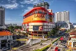 GAMA is a department store within George Town in the Malaysian state of Penang. Located at Dato Keramat Road within the city's Central Business District (CBD), GAMA was opened in 1967, making it the oldest department store in the Penang.[1][2] In spite of competition from the nearby shopping malls, the department store still retains its customer base due to its cheaper pricing.[3] The shopping centre contains a total of eight floors, including its basement parking lot.[1]
