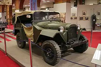 The GAZ-67 and the GAZ-67B (from January 1944) were general-purpose four-wheel drive Soviet military vehicles built by GAZ starting in 1943. By the end of the war, it was the Soviet equivalent of the World War II jeep.[1]