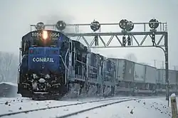 The GE B36-7 is a 4-axle diesel-electric locomotive built by GE Transportation Systems between January 1980 and September 1985. 222 examples of this locomotive were built for North American railroads and eight units were built for a Colombian coal mining operation. The units were designed as successors to GE's U36B's. Of the 230 locomotives built, 180 of them were built for two Eastern railroads - Seaboard System Railroad (which became part of CSX Transportation in 1986) and Conrail.[1]