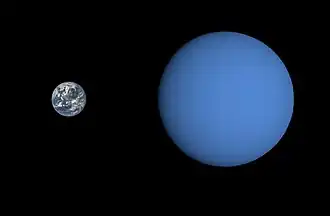 - ^ Bonfils, Xavier; Gillon, Michaël; Udry, Stéphane; Armstrong, David; Bouchy, François; Delfosse, Xavier; Forveille, Thierry; Fumel, Aurélie; Jehin, Emmanuël; Lendl, Monika; Lovis, Christophe; Mayor, Michel; McCormac, James; Neves, Vasco; Pepe, Francesco; Perrier, Christian; Pollacco, Don L.; Queloz, Didier; Santos, Nuno C. (2012). "A hot Uranus transiting the nearby M dwarf GJ3470. Detected with HARPS velocimetry. Captured in transit with TRAPPIST photometry". Astronomy & Astrophysics. 546: A27. arXiv:1206.5307. Bibcode:2012A&A...546A..27B. doi:10.1051/0004-6361/201219623. S2CID 12963626.