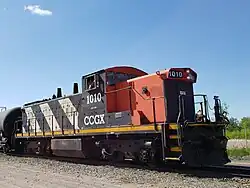 A number of GMD1 units were sold off in the 1990s and 2000s to rebuilders, leasers, regional and shortline railways. Twenty were acquired by Ferrocarriles de Cuba.[4] Oregon Pacific Railroad acquired CN No. 1413, and is now numbered OPR No. 1413.[5] Cando Rail Services acquired CN 1401, 1434 and 1435 in late 2018. CN 1401 is now CCGX 1009, CN 1435 is CCGX 1010. Waterloo Central Railway took donation of and restored a GMD1 in 2021.[6]