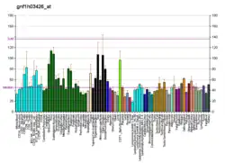 The human glucocorticoid receptor DNA binding factor, which associates with the promoter region of the glucocorticoid receptor gene (hGR gene), is a repressor of glucocorticoid receptor transcription. The amino acid sequence deduced from the cDNA sequences show the presence of three sequence motifs characteristic of a zinc finger and one motif suggestive of a leucine zipper in which 1 cysteine is found instead of all leucines. The GRLF1 enhances the homologous down-regulation of wild-type hGR gene expression. Biochemical analysis suggests that GRLF1 interaction is sequence specific and that transcriptional efficacy of GRLF1 is regulated through its interaction with specific sequence motif. The level of expression is regulated by glucocorticoids.[6]