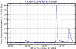In 1985, Bjørn Ragnvald Pettersen announced his discovery that the star shows very high stellar flare activity, with an average of five flares per hour.[16] It was given its variable star designation, EI Cancri, in 1987.[17]