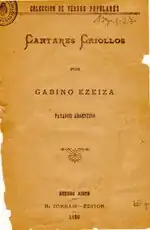 Gabino Ezeiza, nicknamed El Negro Ezeiza[2] (February 3, 1858 – October 12, 1916), was an Argentine musician. Ezeiza was one of the greatest performers in the art of the payada. He became renowned, both in his native land and in Uruguay, after a memorable encounter with Oriental payador Juan de Nava, who carried at the time a certain halo of invincibility. This celebrated contest was held in the city of Paysandú on July 23, 1884, in front of one of the largest crowds ever to gather for a payada duel (in Argentina July 23 is established as the "Day of the Payador" in commemoration of this event).[3]