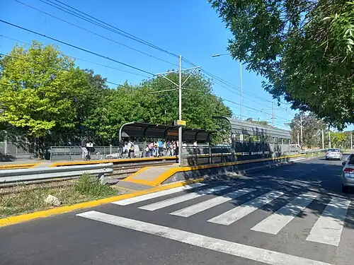 Gabino Ezeiza is a station on the Buenos Aires Premetro. The station is on the branch that terminates at General Savio station. It was opened on 29 April 1987 together with the other Premetro stations.[1] The station is located between the Barrios of Villa Lugano and Villa Riachuelo, near the Autódromo Juan y Oscar Gálvez.