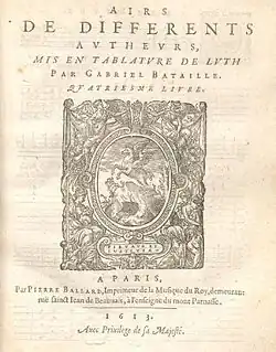 Gabriel Bataille (between June 1574 and June 1575[1] – 17 December 1630) was a French musician, lutenist and composer of airs de cour. He should not be confused with his son Gabriel II Bataille.