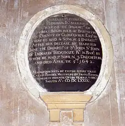 - ^ Gabriel's son, Oliver, and his son-in-law, William Bayly (a lawyer of the Middle Temple), were also signatories. The settlement was witnessed by several Wiltshire gentlemen, including Richard Mompesson.[47]