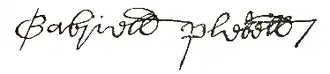 - ^ Wall mistakenly references Sir William Sharington as the forger, Henry's older brother.[43] Though he had a reputation for embezzlement and conspiracy, William died in 1553; the will in question was produced three days before Baynton's death in 1564.[45]