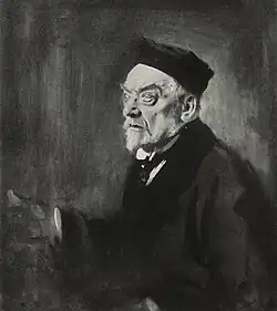 In 1878 he became a professor and lecturer in drawing at the Münchner Kunstakademie, holding the position until 1919. His colleagues there included Franz von Stuck and Wilhelm von Diez. He was a member of the Luitpold-Gruppe, founded in 1896 as a sub-division of the Münchner Künstlergenossenschaft. The Luitpold-Gruppe also included Hugo Bürgel (its president), Walter Firle, Fritz Baer, Karl Marr, Johann Sperl and Wilhelm Leibl.[2] Several artists trained by Hackl found success, though he had no lasting success with his own work, which still occasionally appears at auction.[3] He died on 5 June 1926, in Munich.