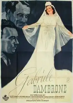 Gabriele Dambrone is a 1943 German drama film directed by Hans Steinhoff and starring Gusti Huber, Siegfried Breuer and Christl Mardayn.[1] It was shot at the Babelsberg Studios in Berlin. Location shooting took place in Vienna and Tyrol. This was an expensive production with a budget of 1,627,000 Reichsmarks. The film was a popular success at the box office.