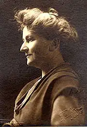 Gabrielle Duchêne was born into a bourgeois family in Paris on 26 February 1870.[1] Although she became a socialist, she was a wealthy woman.[2] She became interested in politics with the Dreyfus affair, and then became involved in philanthropic work.[3] In 1908 she co-founded Entr’aide (Mutual Aid), a cooperative for the makers of lingerie and fashion items. In the following years she fought against exploitation of home workers in the garment industry, for higher wages and improved working conditions, for establishing a law defining minimum wages (which was enacted on 10 July 1915), for equal pay and for the promotion of syndicalism through education of the workers.[1]
