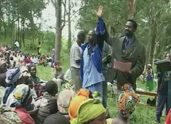 ![]() Screenshot depicting a Rwandan man testifying before a Gacaca court. | |