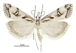 - ^ Gaskin, David E. (1987). "Supplement to New Zealand Crambinae (Lepidoptera: Pyralidae) — corrections, description of females of two species, and notes on structure, biology, and distribution". New Zealand Journal of Zoology. 14 (1): 113–121. doi:10.1080/03014223.1987.10422688.