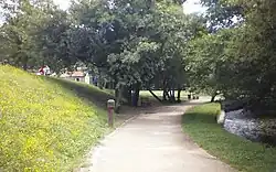 The park is 6.5 kilometres long and two kilometres in its urban part.[11] The banks of the river have been transformed in some places into large recreational and rest areas.