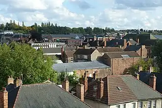 Gainsborough (/ˈɡeɪnzbərə/) is a market town and civil parish in the West Lindsey district of Lincolnshire, England. The population was 20,842 at the 2011 census,[2] and estimated at 23,243 in 2019.[3] It lies on the east bank of the River Trent, 18 miles (29 km) north-west of Lincoln, 16 miles (26 km) south-west of Scunthorpe, 20 miles south-east of Doncaster and 39 miles (63 km) east of Sheffield. It is sometimes claimed to be England's furthest-inland port.[4][5][6]