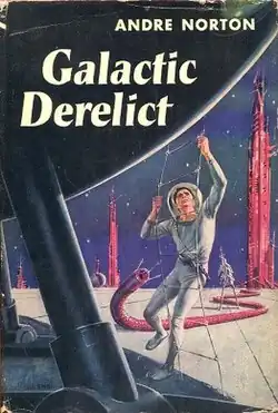 - Norton, Andre (1959). Galactic Derelict. Cleveland, World Pub. Co. OL 24746618M.