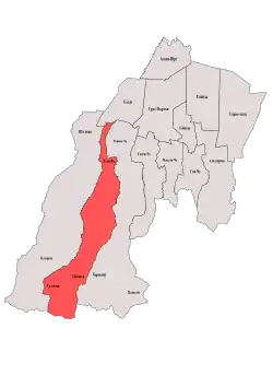 According to the Regulations on the management of the Terek Oblast in 1862, the Ingushskiy Okrug was established as part of the Western Department. It included societies of Nazranians, Karabulaks, Galgai, Kistins, Akkins and Tsorins[5] (also Meredzhin society and some Galanchozh and Yalkharoy auls).[6] The village of Galanchozh was part of the Gorsky section of the Ingush district.[6] In 1866 the village of Galanchozh (Meredzhi society, some Galanchozh, Yalkharoy auls and Akkin society) was ceded to the Argunskiy Okrug due to them belonging to the same nation as the locals (Chechen) and geographically closer to the central governance of the Okrug.[7]