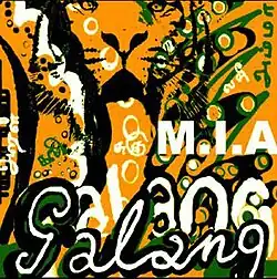 "Galang" is the debut single by British musician M.I.A. from her debut album Arular. It was released in 2003 on Showbiz Records which pressed 500 vinyl copies, gaining immediate international recognition via radio airplay, fashion shows, club rotations and internet filesharing. "Galang" was re-released on 1 November 2004 via XL Recordings as the second single from the album released by the label and was released for a third time as "Galang '05" on 11 October 2005 by the label and in the US by Interscope Records. It is written by Maya "M.I.A." Arulpragasam, Justine Frischmann, Ross Orton and Steve Mackey. It first appeared on M.I.A.'s six song demo tape in 2003, then on her official Myspace account on 9 June 2004 and was later reworked slightly by Orton and Mackey who received production credit for the song. "Galang" was the second song M.I.A. wrote on her Roland MC-505, intending for the piece to be performed by Frischmann's band Elastica. Inspired by her experiences and observations of life in London, M.I.A. wrote the song to encourage her friends in the band to continue to make music. However, after cowriting the song, Frischmann convinced M.I.A. to record "Galang" herself, complimenting the piece's lyrical narrative and music direction.