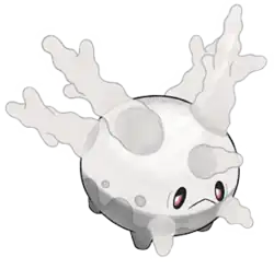 Galarian Corsola, known in Japan as Galarian Sunnygo (Japanese: サニーゴ, Hepburn: Sanīgo), is a Pokémon species in Nintendo and Game Freak's Pokémon media franchise. First introduced in the video games Pokémon Sword and Shield, it is based on coral, particularly bleached coral. It is a regional variant; a version of a Pokémon that is biologically unique to an in-game region of the Pokémon Corsola, which was introduced in Pokémon Gold and Silver. Classified as a Ghost-type Pokémon, in the games' lore this variation of Corsola went extinct in the Galar region, the main setting of Sword and Shield.