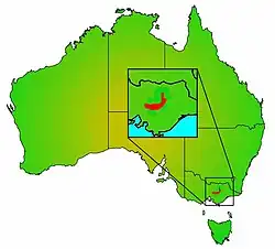 The barred Galaxias is found in the upper reaches of the Goulburn River system north of the Great Dividing Range at an elevation of 400–1,600 metres (1,300–5,200 ft) AMSL within the Murray-Darling Basin and roughly 75 kilometres (47 miles) north east of Melbourne. The species is now extinct in previously recorded locations: the lower Rubicon River near Rubicon; Mountain Creek near Kinglake; Whitehouse Creek north east of Marysville); and, Gaffneys Creek near A1 Mine Settlement. Range is limited to areas that are trout free.[2]