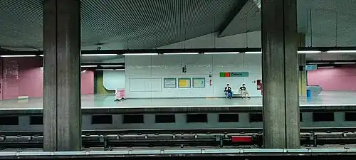 Galería (Station code: GAL) is a Federal District Metro station on the Orange and Green lines. It was opened on 31 March 2001 as part of the inaugural section of the line, from Central to Terminal Samambaia and Praça do Relógio. It is located between Central and 102 Sul in Brasília's South Wing (Asa Sul), Brazil.[1] The station got its name because it is located under the Galeria dos Estados, one of the main shopping areas in central Brasília, and also serves as a pedestrian crossing.
