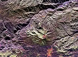 Galeras (Urcunina among the 16th-century indigenous people) is an Andean stratovolcano in the Colombian department of Nariño, near the departmental capital Pasto. Its summit rises 4,276 metres (14,029 ft) above sea level. It has erupted frequently since the Spanish conquest, with its first historical eruption being recorded on December 7, 1580.[2] A 1993 eruption killed nine people, including six scientists who had descended into the volcano's crater to sample gases and take gravity measurements in an attempt to be able to predict future eruptions.[3] It is currently the most active volcano in Colombia.