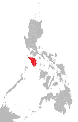The Mindoro bleeding-heart dove is endemic to the island of Mindoro in the Philippines. It typically dwells in lowlands at an altitude of 400 m (1,310 ft), but has been noted at 750–800 m (2,460–2,620 ft).[2] It has only been observed in 4 regions of the island since 1980,[7] as deforestation has dwindled its preferred habitat of closed-canopy primary forest. These regions are Puerto Galera, MUFRC Experimental Forest, Siburan, and Mounts Iglit–Baco Natural Park, but scientists believe other populations may be scattered in other localities.[1] This bird favors dry forest floors overrun with bamboos and rattans, occasionally dotted with limestone outcrops and boulders.[2] It has also been observed near pools of dry riverbeds that exist on more leveled forest floors without as many rocks.[1]
