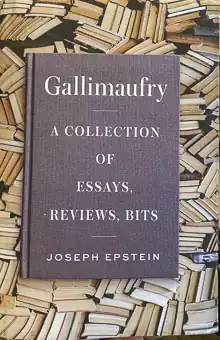 Gallimaufry, A Collection of Essays, Reviews, Bits, is a 2020 collection of 57 essays, book reviews, and shorter pieces all by Joseph Epstein. Essay topics in this collection include authors, literature, biographies, writing, language (its use and misuse), universities, culture, Chicago and humor. The collection is organized into three sections: (i) Essays and Reviews, longer pieces, #1-39 below, (ii) Bits and Pieces, shorter pieces, #40-56 below and (iii) Edward Redux, an essay on his friend and mentor Edward Shils. All of these essays were previously published in journals and anthologies including The Weekly Standard, Commentary (magazine), Claremont Review of Books, Wall Street Journal and others.
