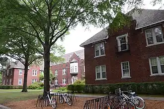 Galloway Hall is a residence hall on the campus of Hendrix College in Conway, Arkansas. It is a large Tudor Revival three story brick building, designed by architect Charles L. Thompson and built in 1913. Its central portion has a gabled roof, with end pavilions that have hip roofs with gabled dormers, and stepped parapet gables, with limestone trim. It is the oldest dormitory building on the campus.[2] It was named to honor Bishop Charles Betts Galloway.[3]