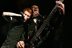 Gallows were an English hardcore punk band from Watford, Hertfordshire. The band was formed in 2004 after Laurent Barnard's previous band disbanded. Gallows' debut album, Orchestra of Wolves, was distributed in the United States by Epitaph Records. The band were subsequently signed to Warner Bros. Records for a £1 million album contract, and released their second album Grey Britain in 2009.[1][2] The band has been particularly successful in the UK, with two songs charting on the UK Singles Chart, and have been featured in magazines such as Kerrang!, Alternative Press and Rolling Stone.[3]