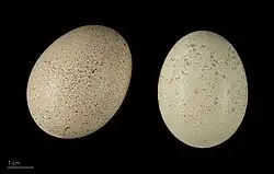 Her eggs are highly variable in colour, but generally are cream with a yellow or pink tint. Purple or brownish spots are common. Occasionally, a female produces red eggs or blotched eggs.