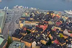 Gamla Stan (Swedish: [ˈɡâmːla ˈstɑːn], "The Old Town"), until 1980 officially Staden mellan broarna ("The Town between the Bridges"), is the old town of Stockholm, Sweden. Gamla Stan consists primarily of the island Stadsholmen. Gamla Stan includes the surrounding islets Riddarholmen, Helgeandsholmen and Strömsborg. It has a population of approximately 3,000.