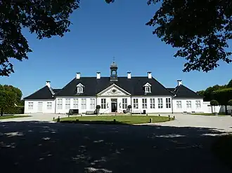 In 1754, Lauritz de Thurah acquired an agricultural property, a former tenant farn, in order to establish a suitable country house for himself outside Copenhagen. Simultaneously he was also building a town house for himself in Amaliegade in Copenhagen's new Frederiksstaden district, the responsibility of which he had been assigned after the death of Nicolai Eigtved (1701–1754) the previous year. Prior to that, he had lived some years at his estate at Børglum Abbey to which he had retired when his Baroque style fell out of favour and most of the prestigious assignments in the capital went to Eigtved.[3] [4]