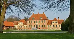 The current Neoclassical main building dates from 1791. It consists of a two-storey main wing built in red brick under a red tile roof and two lower lateral wings. The latter were altered in 1856. An interconnected wing with timber framing is the only preserved part of the previous complex from 1603.[3]
