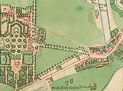 Gammel Kongevej is one of the oldest road sections in Frederiksberg, originally providing a direct connection between Copenhagen's Western City Gate and the historic village of Solbjerg (no longer in existence). From there the road continued past the Damhus Lake towards Roskilde, giving rise to the name Roskildegaden ("The Roskilde Street"), which is seen in some documents from the beginning of the 17th century.[1]