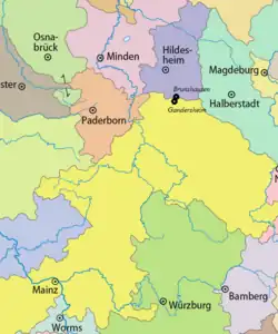 The Great Gandersheim Conflict (German: Gandersheimer Streit) was a conflict between the Archbishops of Mainz and the Bishops of Hildesheim concerning the jurisdiction over Gandersheim Abbey. It lasted from 987 to 1030, during the reign of the Ottonian emperors Otto III and Henry II as well as of their Salian successor Conrad II.