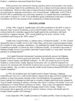 - ^ a b c d e f g "Investigation of Illegal or Improper Activities in Connection with 1996 Federal Election Campaigns", 105th Congress, 2nd Session, United States Senate Report 105-167 Part 5, 105 S. Rpt. 167; Prt. 5, March 10, 1998. hosted at www.senate.gov, See also: The Contribution of Yogesh Gandhi.